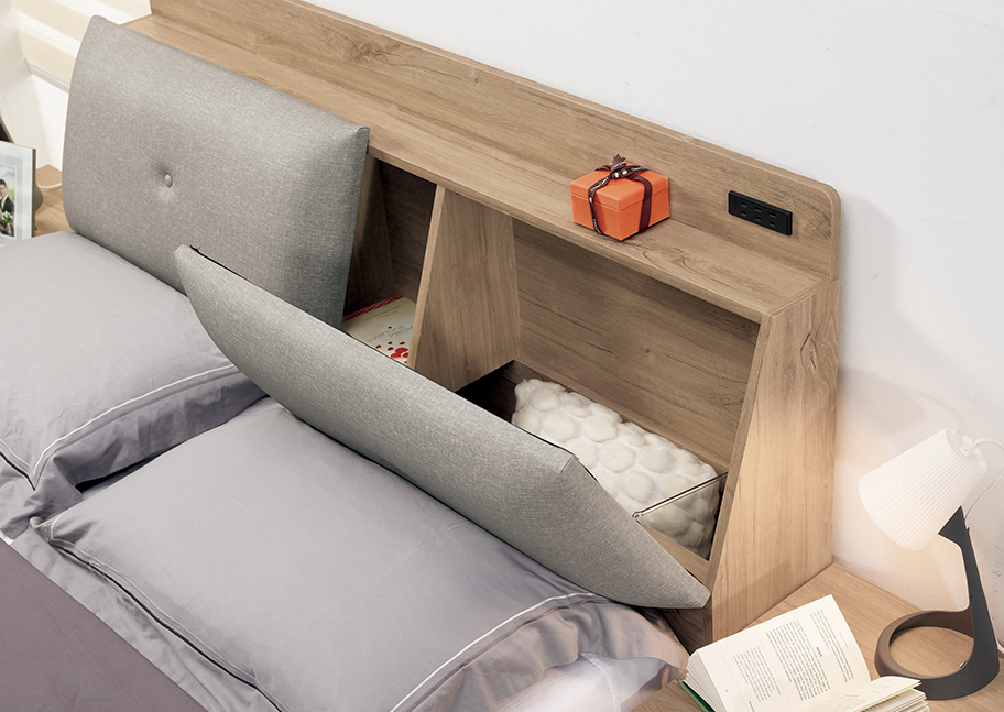 除此之外,你也可以選擇上掀式的床組,可以大量擴增臥室的儲存空間,非常適合小套房使用。