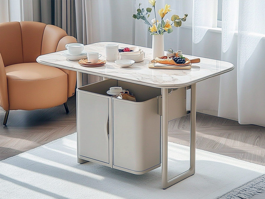 折疊式桌/延伸桌 是最靈活的選擇,可依需求變換桌面大小,不用時可收起,完全不佔地。
