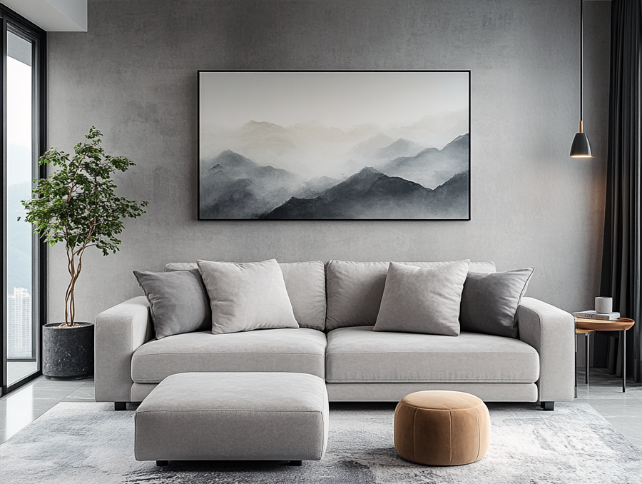 搭配低彩度布織品(如淺灰抱枕、米色地毯),統一視覺調性,空間自然放大
