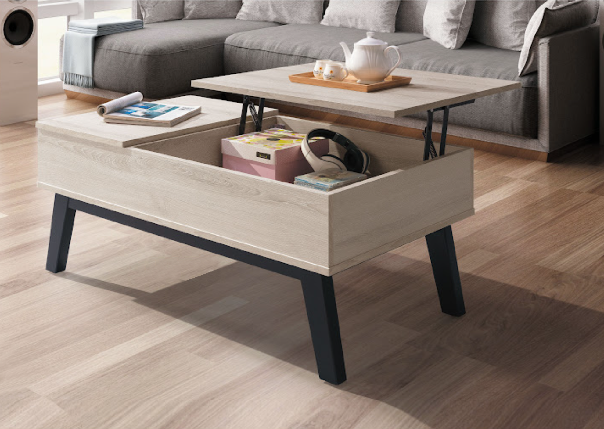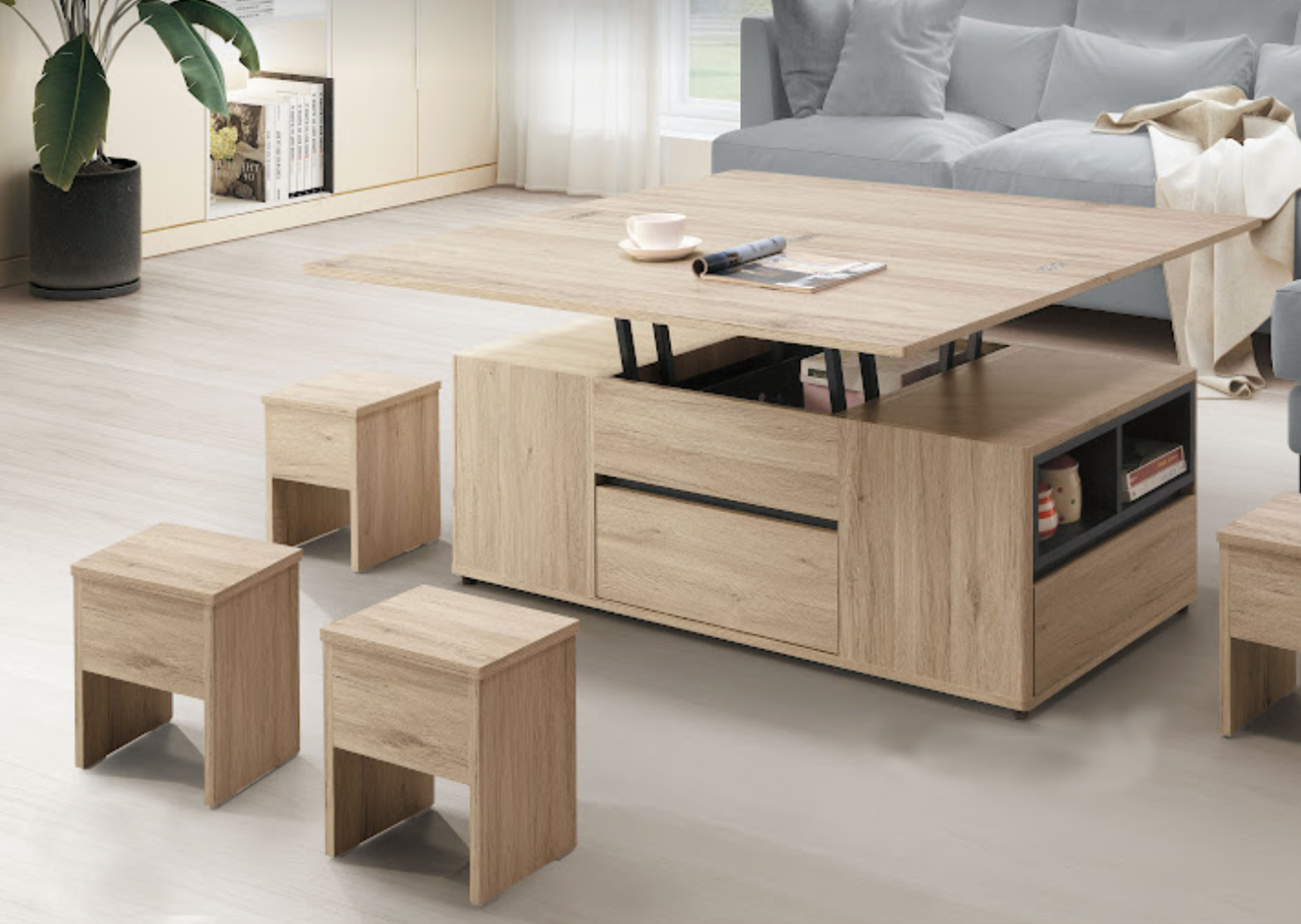 升降式茶几可以調整高度,從而適應不同的使用需求。當你需要在桌子上工作或者吃飯時,可以把茶几升高;當你需要舒適地放鬆時,可以把茶几降低。而大部分的升降式茶几也會在下方提供儲物空間。