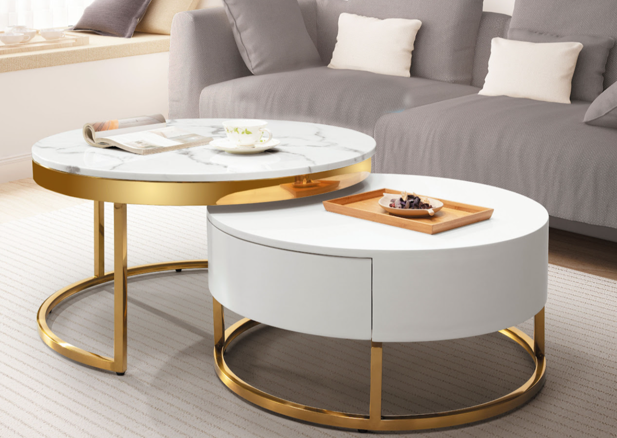 🔴金屬:許多茶几都是用不銹鋼或鋁製底座製成的。這種茶几材質具有多種金屬表面,包括拉絲鎳、金、黃銅和銅,可以提升任何空間的精緻度。