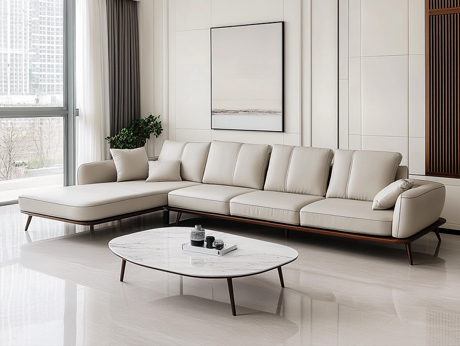 L 型沙發:若客廳夠大,可考慮 L 型設計,不僅能容納多人同坐,也能提供躺臥放鬆的空間。