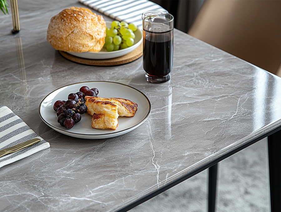 陶板餐桌的誕生,正是為了解決這些問題。這種來自建材界的高強度材質,經過高溫與高壓技術製成,不僅外觀自然、質感接近石材,還兼具以下特性: